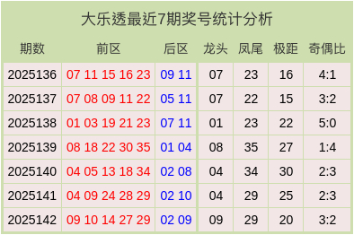 上期大乐透的开奖号码中,首尾组合为09+29,极距为20,奇偶比为3:2。
